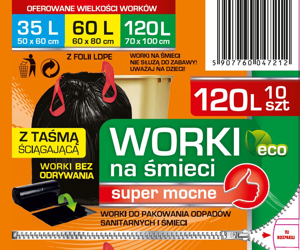 WORKI NA ŚMIECI 120 L Z TAŚMA SUPER MOCNE LDPE