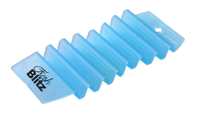 Najwyższej jakości zapachowa zawieszka żelowa. Wydziela intensywny, przyjemny i trwały zapach przez około 30 dni. Zawieszka air blitz odświeży oraz utrzyma przyjemny zapach w każdym pomieszczeniu- toalecie, biurze, szafie ubraniowej, etc. Posiada możliwość zamontowania na płaskich powierzchniach za pomocą przyssawki. Nowoczesny, przeźroczysty design w kształcie harmonijki pasuje do każdego wnętrza. Produkt jest nietoksyczny, biodegradowalny.